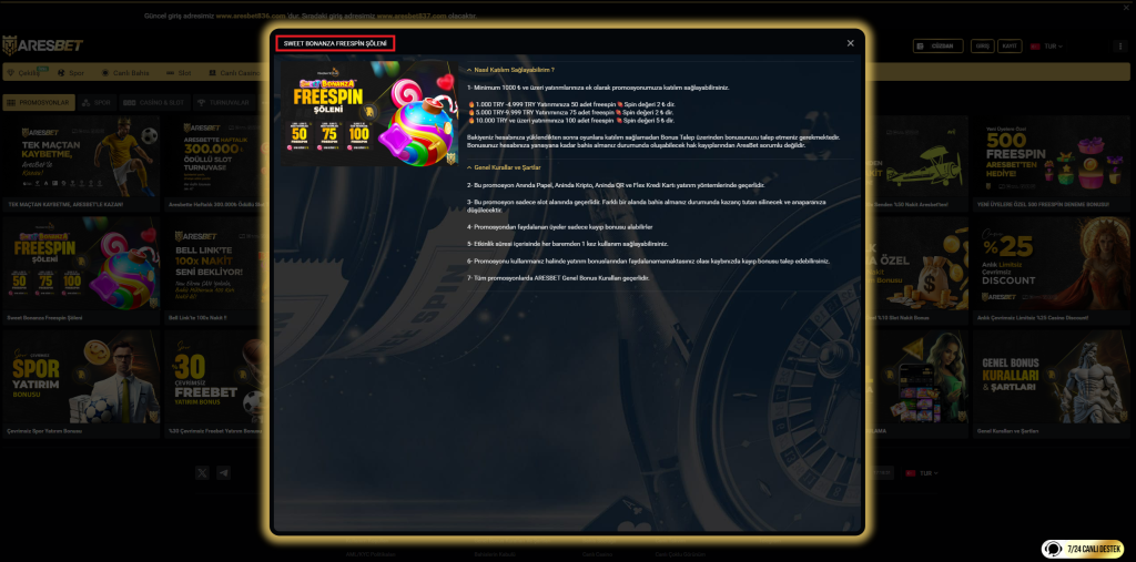 Tüm promosyonlarda ARESBET Genel Bonus Kuralları geçerlidir.